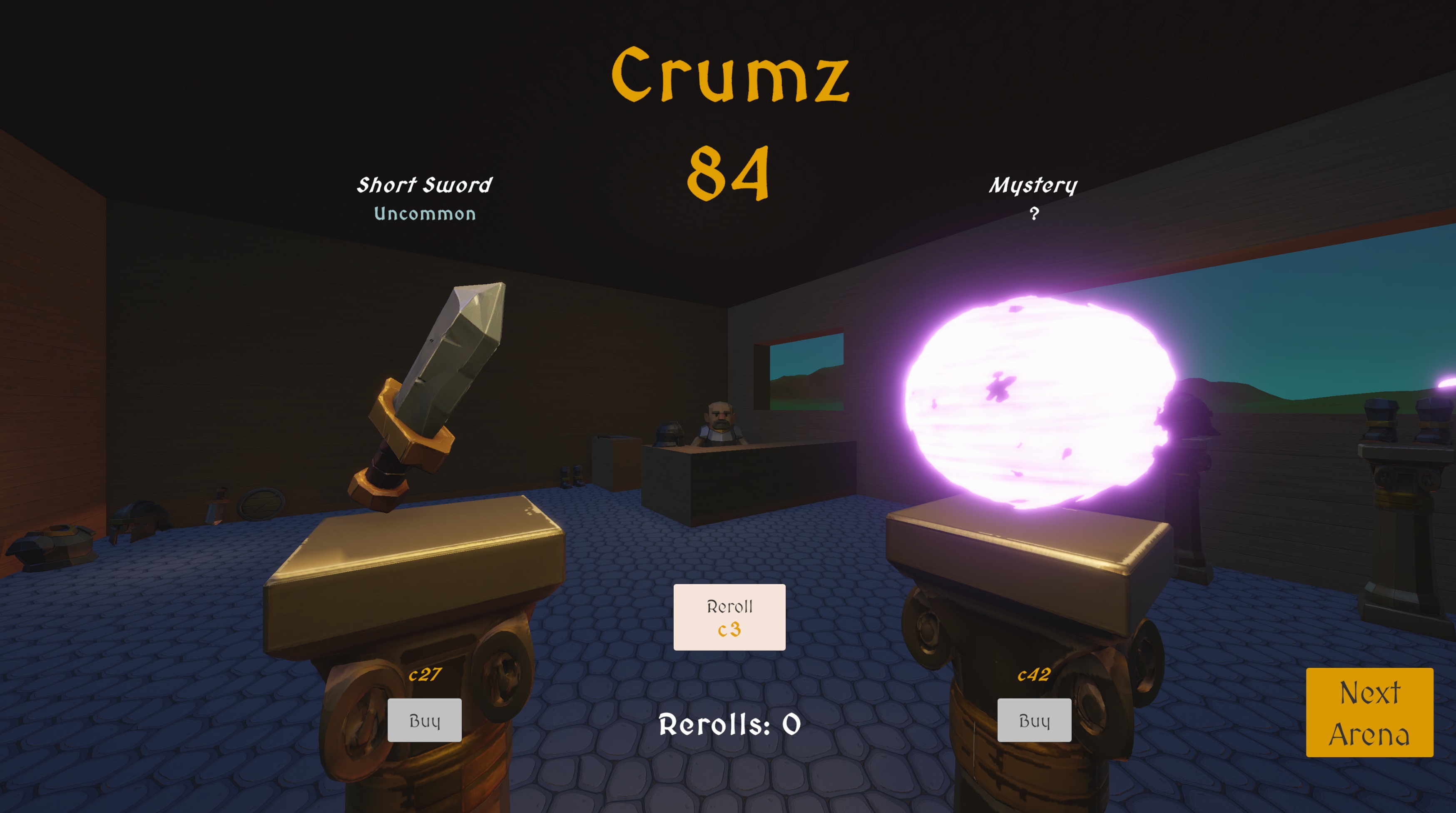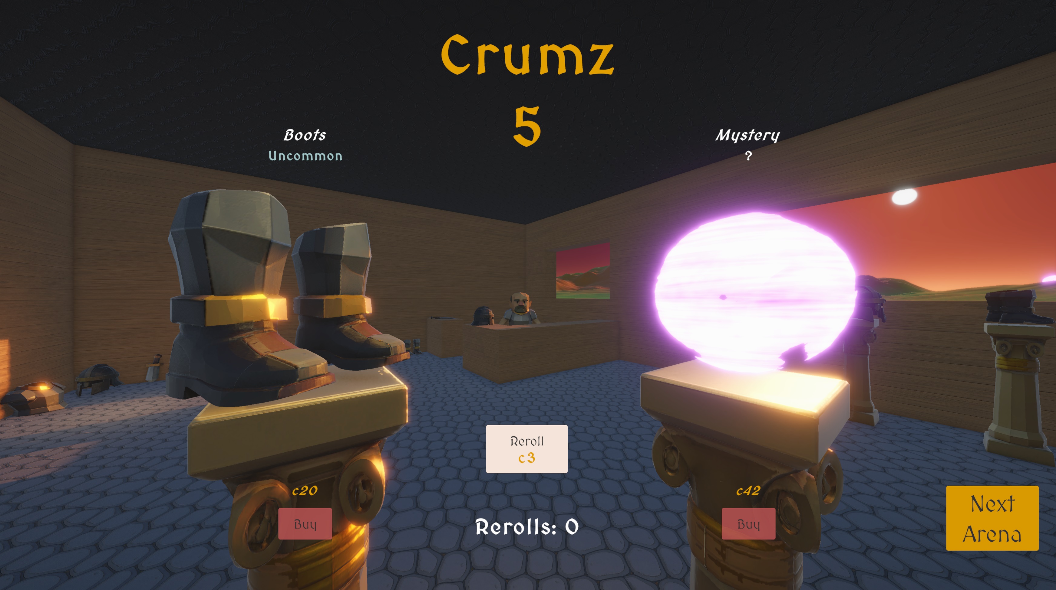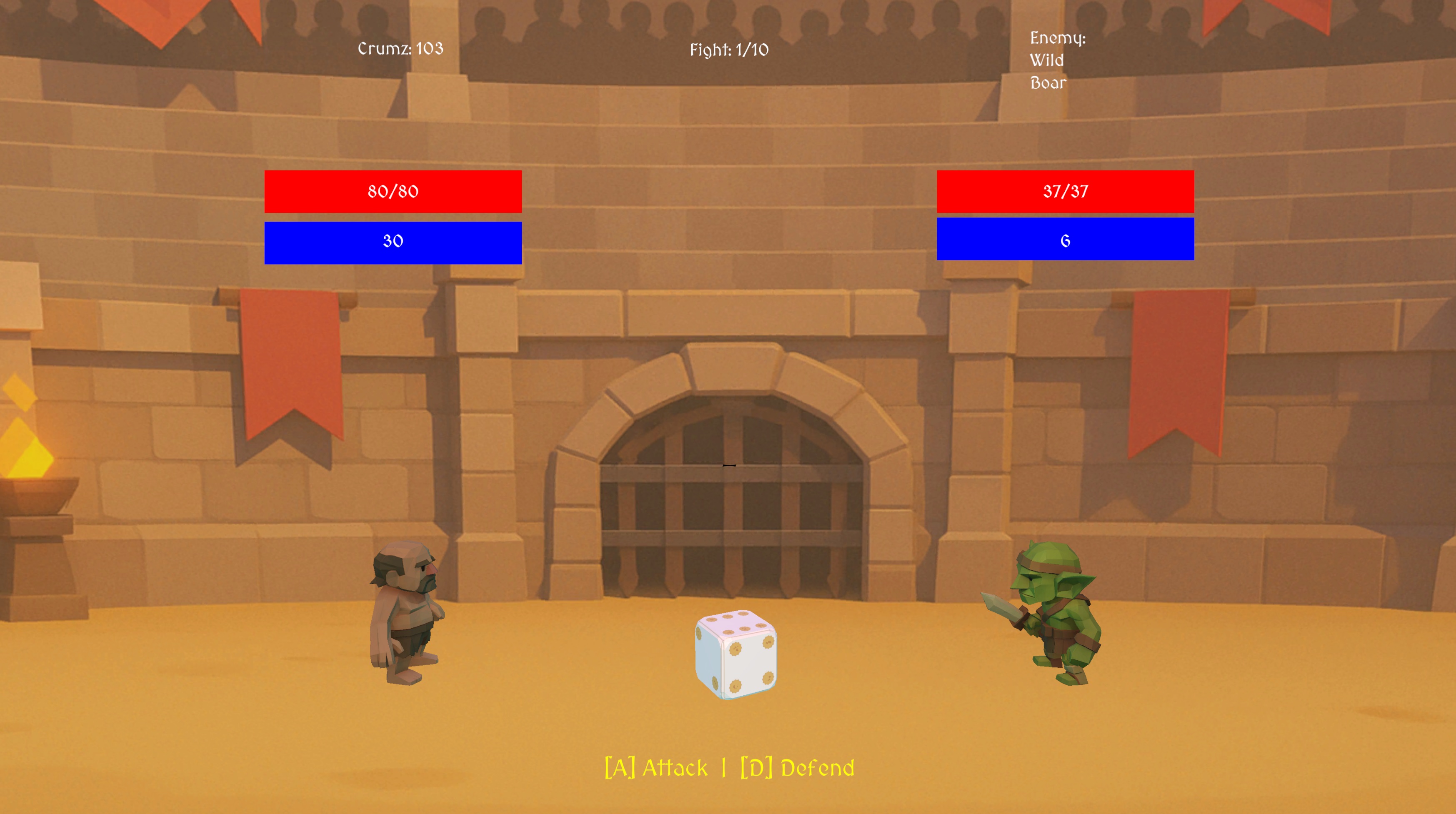 🎲 Roll tactile d6s to Attack or Defend, earn Crumz, then visit a shady shop: take a safe visible item or risk it for a mystery item.(chance at Rare/Epic).